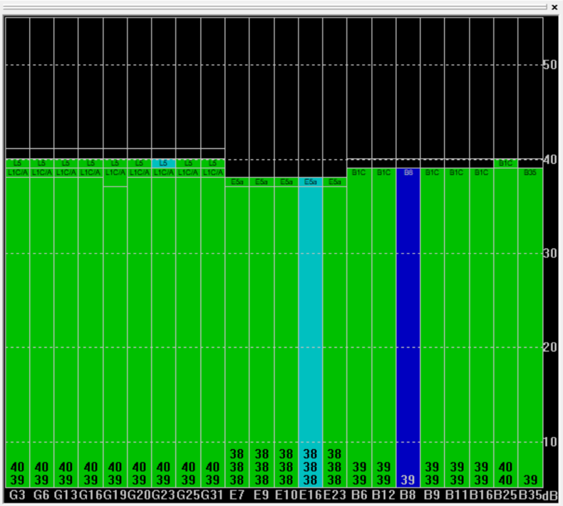 故障排除工具:C/N0 的波動可能預示著衛星傳輸或接收端天線,射頻硬件等存在諸如信號阻塞,遮擋,干擾等潛在問題。及時識別并糾正這些異常可確保接收機的持續穩定工作。